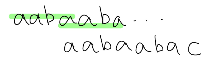 3. 다른 부분이 있다면 해당 위치에서 접두사와 접미사가 동일한 만큼 이동시킴