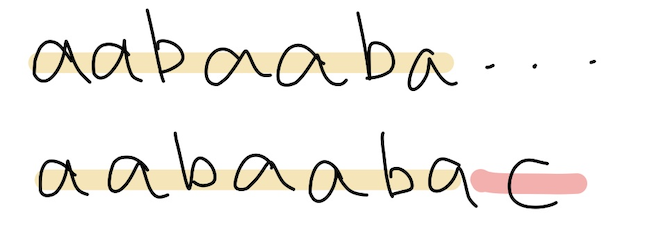 else { // 일부 일치하면 접두사 접미사가 일치하는 만큼 시작부분을 옮겨줌